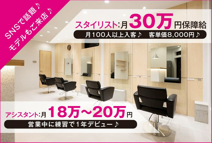勢いそのままに拡大中 《2025年 NEW OPEN》 11月 桜木町 n/m by JIL BLAN 高崎 REGISTA by JIL BLAN 12月 千葉 JIL BLAN ★急募店舗★ 葛西・大阪・名古屋・錦糸町 『今の給与は維持したいけれど、新しい環境でチャレンジしたい』 キャリアチェンジを考える時、今の生活やご家族のことを考えると、なかなか一歩を踏み出せないというお気持ち、よく分かります。 あなたの決断を、私たちは全力でサポートしたいと考えています 【成長できるサロンだから叶う】 ~所得1.5倍計画♪~ スタイリストの育成を得意としているので “1年以内に所得を1.5倍以上アップ”を 叶えてみませんか! 【美容師の生活を守ります】 ~今の給与を“1年間100%保証”~ あなたのご家族もしっかり守ります! だから安心して新しい環境へ飛び込んできてくださいね。 ★☆1年間前職100%給与保証☆★ ※【最低】保障が月35万円~(22日勤務一律支給◎) ※勤務日数・時間に関しては相談可能です 歩合:フリー50%/指名55%~60% *指名料全額バック *材料費・光熱費は会社負担 *保障日給:12,000円 <実績> 〇顧客0/SNS経験なしで入社 入社2か月目:指名売上100万円(入客数71名)/月収40万円 入社4ヵ月目:指名売上200万円(入客数142名)/月収80万円 ※スタイリスト平均指名売上280万円 【前職よりも確実に稼げる美容師へ】 私たちと一緒に、給与の心配なく、 あなたの美容師としてのスキルをさらに磨きませんか? 「キャリアチェンジしたいけど、今より給与が下がるのが不安」 という心配は、もう手放してください。 ◎入社お祝い金20万円 ◎客単価1.4万円