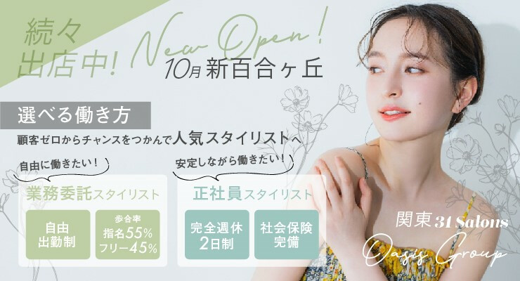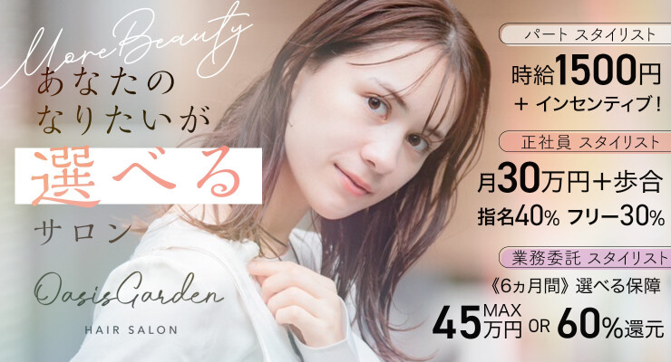 OasisGardenグループは、仕事とプライベートを両立しながら、自分に合った働き方を選べるサロンです!美容師としてだけでなく人としても成長できる環境が整っており、長く安心して働けます♪
