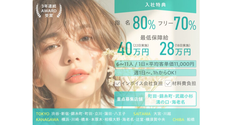 歩合80%★初月平均60万円以上★3年連続AWARD受賞