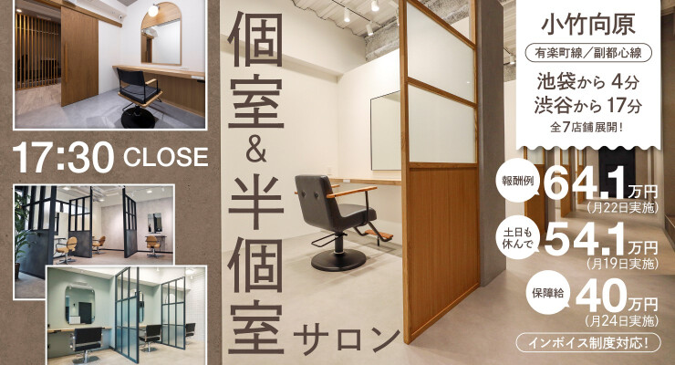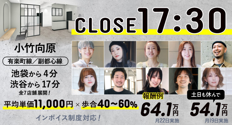 17時半閉店でここまで稼げるサロンは他にはありません。プライベートの充実はもちろん、マンツーマン・掛け持ちなしでお客様としっかりと向き合えること、豊富な薬剤や半個室・完全個室のセット面など、美容師として妥協することなく誇りを持って働ける環境が揃っています!ぜひお気軽にサロン見学にいらしてください☆