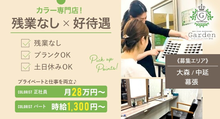 月28万円~♪髪や肌に優しいオーガニック♪長期ブランク♪昇給
