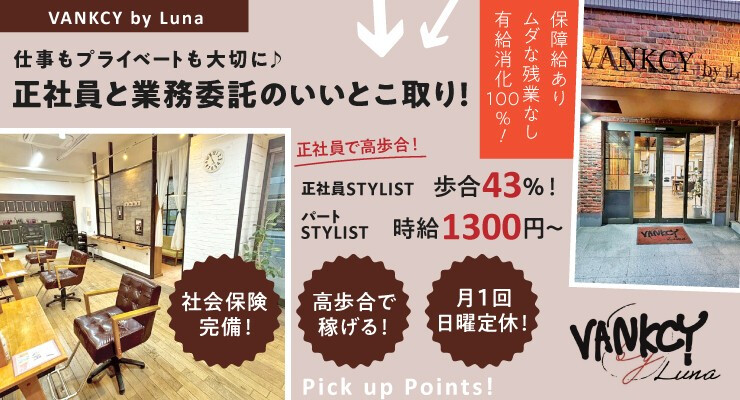 社会保険完備(雇用保険/労災保険/健康保険または美容国保か整容国保/厚生年金)