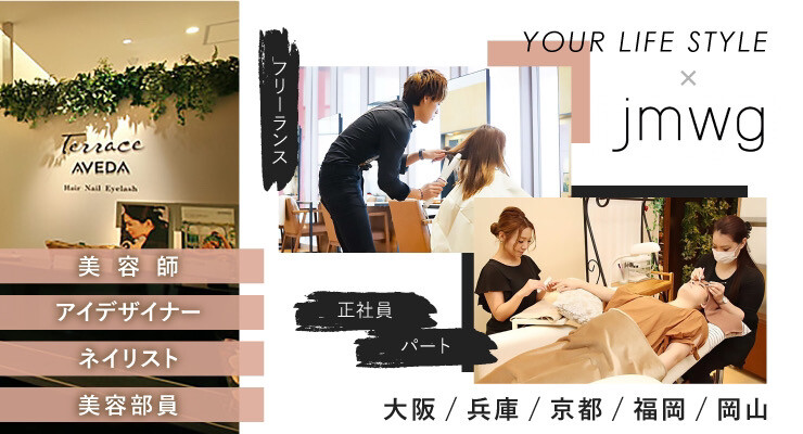 ジェイエムダブルグループは、近畿・中国・四国・九州を中心にさまざまなブランドのサロンを展開しています。スローガンは「やさしいココロと確かな技術でお客様に素晴らしい体験を」提供すること。時代のニーズに合わせた店舗を展開しながら、スタッフの働きやすい環境づくりをおこなっています。