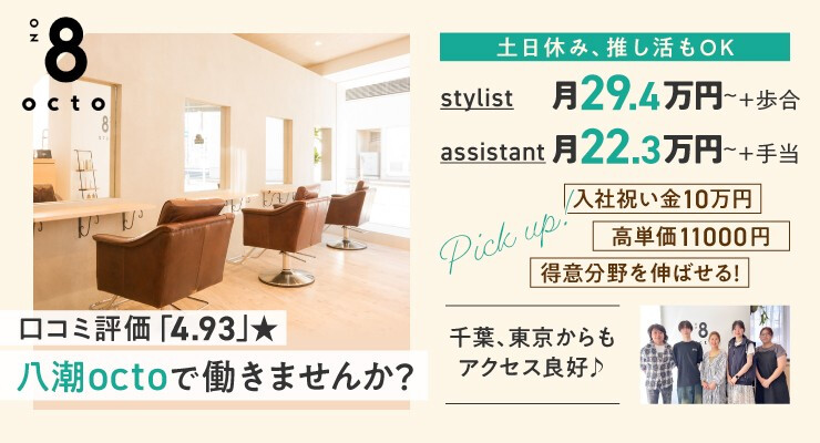 octoは高い技術力とアットホームな雰囲気のサロンです。
