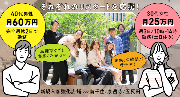 【QJ応募限定】歩合一律70%!リスタート応援サロン