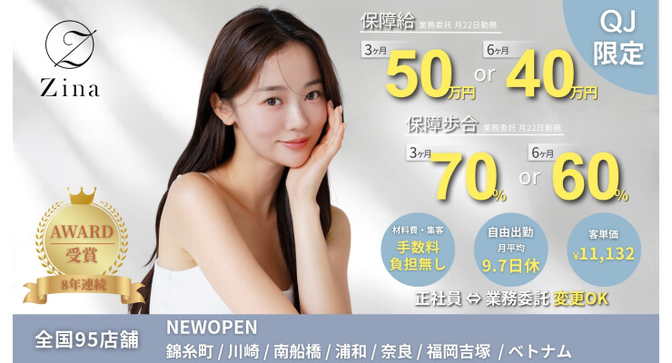 Zinaは銀座・渋谷・新宿・池袋など人気なエリア78店舗展開!今年も続々オープン予定の急成長中のbeauty salonです♪