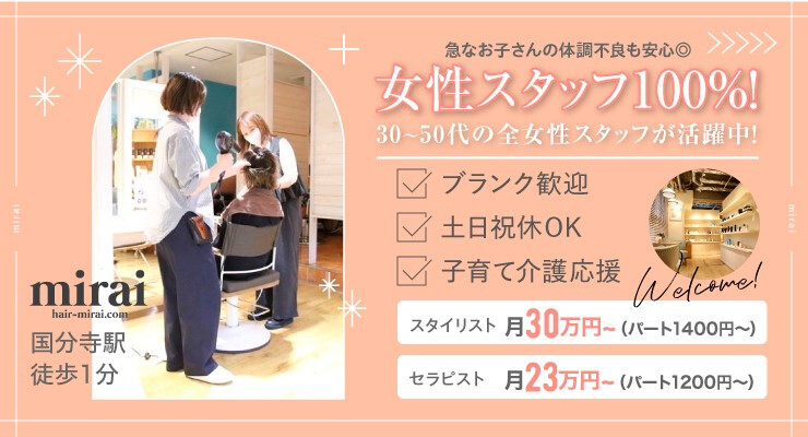 【国分寺駅】ママ活躍≪スパニスト募集≫カットできなくてOK