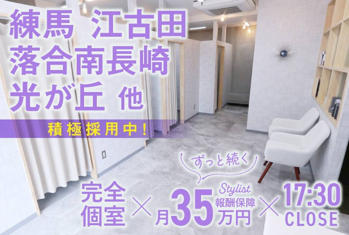 ★ 今後吉祥寺エリアにて新店舗オープンのためチャンス多数 ★ ◇ Reg./ROMANOってどんなサロン ◇ ●正社員(アシスタント有り)は「給与241,500円+歩合給10%〜」 ●マンツーマンスタイリストは売上「45%歩合給」 or 「時給1,300円+10%歩合給」スタート! ●新規集客率が高いので即入客可! ●スタッフ定着率90%・働きやすさに自信あり!! ●トレンドやニーズに合わせた商材を積極導入☆ ●ママさん美容師も多数活躍中♪(時短勤務OK・土日休みOK) ●週休2日/有給休暇/夏季休暇/年末年始/産前産後/育児介護/看護/その他特別休暇あり ●社会保険完備 ●確定拠出年金制度(企業型DC) ●皆勤手当、住宅手当、残業手当、家族手当、資格手当、店販手当、役職手当、報奨金等各種手当有り ◇ 一日の流れ(正社員)をご紹介 ◇ 9:30〜 掃除、準備 、朝礼 連絡事項がある場合はこの時間を使ってスタッフ同士で共有しています! ↓ 10:00〜 OPEN 受付、サロン業務 (休憩は空いた時間に休めるようにしています!) 片付け、掃除なども営業時間内に終わらせたり、練習も可能です♪ ↓ 19:00 CLOSE 18:00が最終受付なので全て業務が終わり次第クローズします! ↓ 営業後、自主練したり、使い方は自分次第! ROMANOはスタッフが安心して長く働ける環境、お客様に満足して長く通っていただけるサロン作りにこだわりを持っているサロンです。 是非一度サロン見学にお越しください! 皆様からのご応募、お待ちしております!