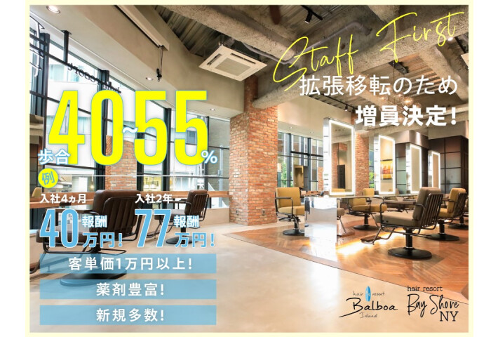 《スタイリストまで最短!すぐに活躍できる!》 今、最も魅力的なエリア【豊洲/勝どき】の店舗限定求人です。 ★☆ 採用枠:残2名 ★☆ 🌟給与 27万円 └シャンプー&カラー一人塗りができる方 →その他習得済み技術に応じて昇給いたします 30万円 └カット練習中の方(Jrデビュー前でも可) 豊洲/勝どきエリアのみの募集になります◎ タワマン・大型商業施設が立ち並ぶ都内一等地で、スタイリストを目指しませんか? 💠2025年 NEWOPEN💠 8月 センター北 10月 稲毛海岸・滋賀守山 11月 錦糸町・川口2nd・おおたかの森2nd 🌟最短半年の早期デビューが叶う エリア責任者が練習を見ます! あなた専用のカリキュラムを作成して進んでいきます。 SNSインフルエンサーも在籍しているので、自己プロデュースも学べます! 🌟効率よく練習ができる 営業時間中に練習可能! 興味のある技術があれば講習会などにも参加できます! 外部講師から教わるチャンスも♪ スキルアップをする環境が多くあります♪ 🌟AWARD多数受賞 🏆某集客サイトAWARD受賞:18店舗🏆 【GOLD Prize🥇/SILVER Prize🥈】を8年連続受賞★ 《月間来店数》1,000名以上の実績 安定した集客が自慢です! 新規/フリーのお客様を獲得するチャンスがたくさん! まずはお気軽にご連絡ください☆