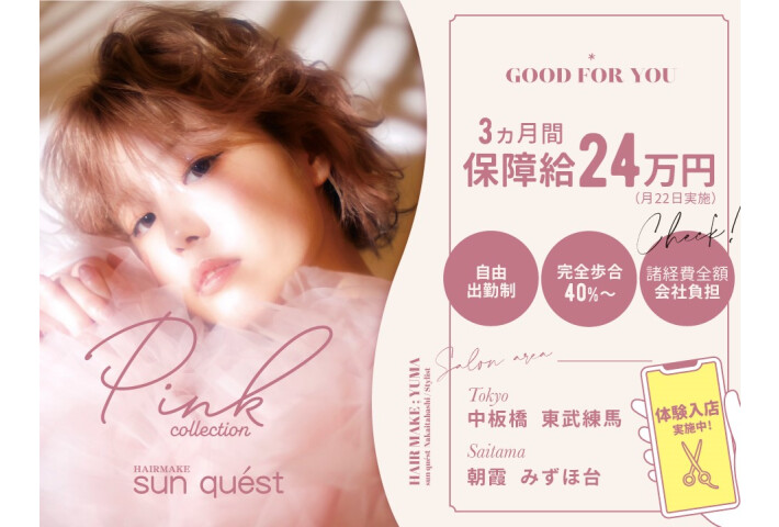 【完全個室サロン】 東京・千葉・神奈川有名エリア アシスタント・スタイリストが活躍中 店長・オーナー続々誕生! *2025年NEWOPEN続々* 1月 越谷レイクタウン・綾瀬 2月 南流山 女性アシスタント、女性スタイリストが活躍中 女性オーナー続々誕生! ☆スタッフ定着率98.7%☆ ■完全週休2日OK ■土日休みOK ■■1カ月短期集中デビューカリキュラム(1ヵ月の実務講習) ■外部講習あり ■人気雑誌の撮影あり 教育は、外部講習・会社内講習を毎月実施! 項目をクリアする毎に3,000円昇給するのでやる気もUP! サロン見学も随時募集しているので 気軽にご連絡ください♪