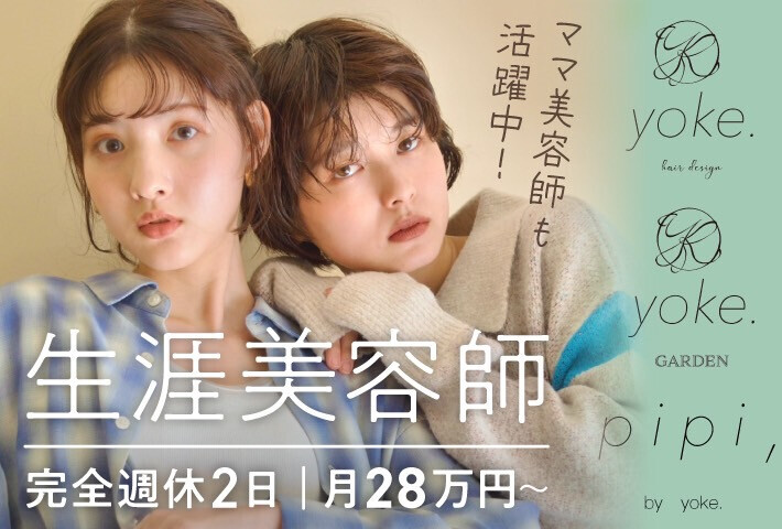 ◆毎月新店OPEN◆ 急成長サロンだからチャンスもたくさん! スタッフの活躍の場を広げるために これからも拡大し続けます! ◆Jr.スタイリストも保障給33.5万円◆ 働き方×稼ぎ方×プライベート… 選択肢が豊富だから理想が叶う! 「正社員or業務委託」 「たくさん稼ぎたいorプライベート派」など バランスよく働ける環境です。 【保障給+歩合で稼げる!】 総売上100万円を超えた「売上の30%」が歩合になります。 ※スタイリスト歴5年実績:平均客単価8000円 総売上120万円(入客150名)=保障給33.5万円+歩合6万円 ⇒総支給39.5万円 ◆報酬実績◆ *9~16時×週4出勤 報酬25万円/入客70名 *1日8h勤務×完全週休2日 報酬45万円/入客150名 *トップスタイリスト 報酬95万円/入客220名 *新人スタイリスト 報酬35万円/入客150名 ●賞与年2回(7月/12月) 総指名売上の3%+業績により還元 ●ビューティーアワード常連 ●スタッフ定着率96% ●育休実績あり ●土日休みOK ●時短勤務OK ●残業なし 【3ヵ月で売上100万円へ】 顧客がいない方、 マンツーマンに慣れていない方、 デビューしたての方など。 まずはきちんとヒアリングをして 3ヵ月で売上100万円を 達成させていきましょう! 【“通いやすい”ד入客しやすい”】 お客さまが無理なく通いやすいサロン。 だから全店いつでも大盛況。 スタイリストの方は、特出した技術や 過剰なサービス、SNSによる発信力が なくても大丈夫! どなたでも入客しやすい環境です! 技術にこだわりたい方も! あなた専用クーポンをつくるので 「好きなこと」で活躍しよう!