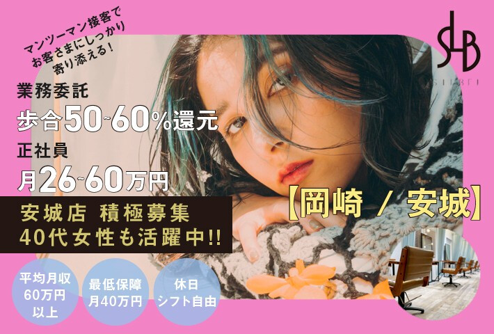 安心して働いていただくために福利厚生を整えています。 その一つが給与です。 アシスタントでも20万円。 がんばっているスタッフには、 評価をしっかりとして給与で還元します。 サロンからちょっと遠いから引越しをしたい! でも費用が・・・そんな方には15万円まで引越し準備金を補助。 遠方や県外出身の方もこの制度を使って引越しをしていますよ! 他にも「学び」「働きやすさ」において、サポート体制は抜群です。 一度、お店へ遊びに来てください。