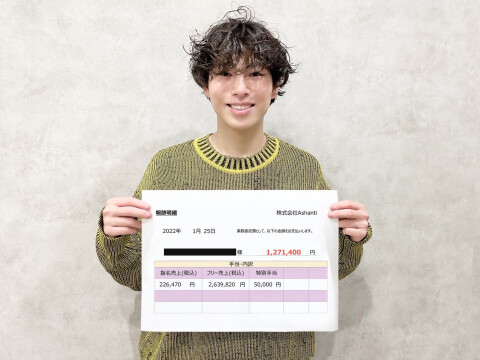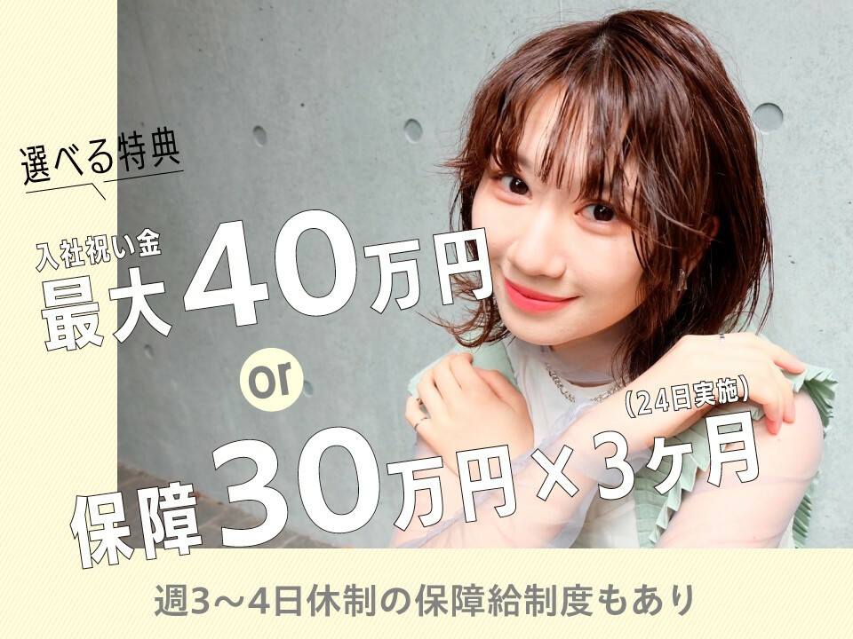 ☆2025年も続々NEWOPEN☆ 9月/10月/11月 新宿 大宮 梅田 《今がチャンス!対象人数限定!》 入社お祝い金10万円(入社後5万円+半年後5万円) ※業務委託でも社会保険加入可◎ 《保障給:ライフスタイルに合わせて選べる♪》 ~あなたはどのタイプ?~ A.保障給月35万円(月23日出勤⇒月7日休み) 顧客がいない…もしくは初めての業務委託で心配… でも入社初月から給与は下げたくない…そんな方におすすめ! B.フリー歩合47%+指名歩合47% 顧客がいない方で、まずは効率よく入客して 指名客をつくりたい方におすすめ! C.フリー歩合40%+指名歩合60% 指名をつくるのに自信がある方や すでに顧客をお持ちの方におすすめ! ※その他、働き方に合わせた保障アリ♪ ※入社3ヶ月 スタッフ満足度95%! 創立12年で全国70店舗以上! 「働きやすさ」×「効率よく稼げる」 勢いがある会社だから入客チャンスもたくさん♪ あなたの時間を有効活用しながら、 効率よく稼ぐことができます! ◆フリー:40~45% ◆指名:47~62%◆客単価7000~1.2万円 ◆1日の平均報酬約23000円 ◆店販手当(10%~20%) ◆材料費・光熱費・広告費・備品・道具類は完全会社負担 ◆平均1日5~7名 《報酬実績》 ☆スタッフ平均報酬45万円☆ 〇23歳女性、弊社でデビュー/スタイリスト歴2年 報酬44万円(1日10h、月10日休み) 〇28歳女性/社歴6ヵ月 報酬33万円(1日7h、月9日休み) 〇27歳男性/社歴1年3ヵ月 報酬57万円(1日12h、月10日休み) 〇31歳男性店長/社歴2年/店長歴5ヶ月 報酬78万円(1日10h、月7日休み)
