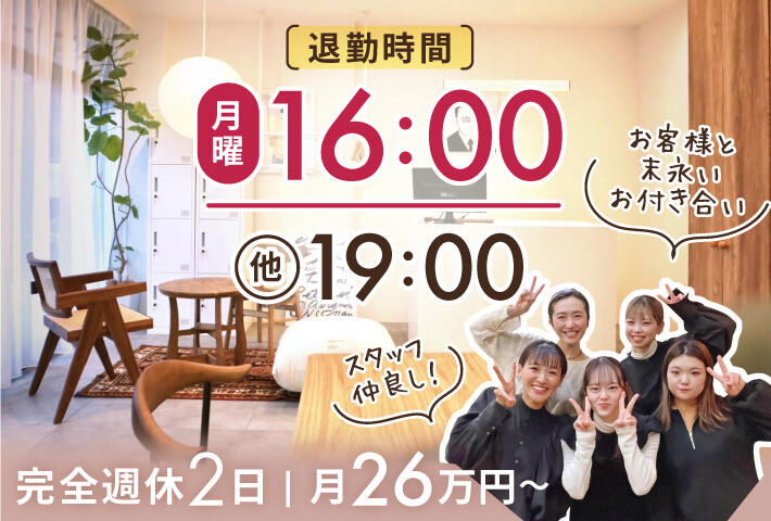 2025集客サイトAWARD受賞! -Uluu Groupで選べる、自由な働き方- プライベート時間をもっと増やしたい.... 休日重視で働きたい... そんな美容師さん、必見!💡 \週休3日制 導入サロン/ 週休3日で働いて『自分時間』をもっと増やしませんか? 月給25万円~ ・キャリアアップや稼ぎを重視の方 →業界高水準の給与体系 (月30万〜35万円/独立・FCオーナー支援あり) ・プライベートや趣味、自分の時間を重視の方 →土日祝日休み取得、18時退社可能 Uluuグループの最大の魅力は... 【自分らしい働き方を叶えられる】ところです。 具体的には.. <ライフスタイルが変わって、お休みをもっと増やしたい> ・正社員→業務委託へ <美容業界にはいたい、でも将来はハサミを置きたい...> ・業務委託→正社員(管理者、バックオフィス系)へ わざわざ転職しなくても、社内でキャリアチェンジが可能! Uluuグループなら【あなたの美容師としての経験を最大限に活かせる】環境をご用意。 子育て中のスタイリストさんが働きやすいよう、育休・産休制度も導入。 ◆高単価:10000円以上 ◆FC・独立支援も全力応援! ◆フロント・アシスタント完備 Uluuグループで新しいキャリアを歩みませんか?