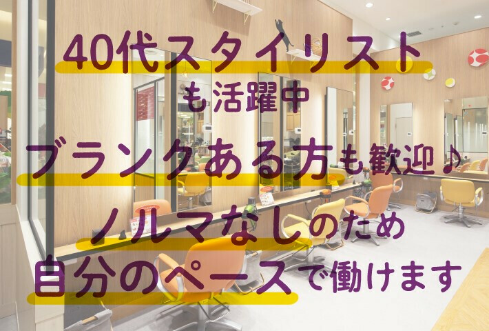 ◆毎月新店OPEN◆ 急成長サロンだからチャンスもたくさん! スタッフの活躍の場を広げるために これからも拡大し続けます! ◆Jr.スタイリストも保障給33.5万円◆ 働き方×稼ぎ方×プライベート… 選択肢が豊富だから理想が叶う! 「正社員or業務委託」 「たくさん稼ぎたいorプライベート派」など バランスよく働ける環境です。 【保障給+歩合で稼げる!】 総売上100万円を超えた「売上の30%」が歩合になります。 ※スタイリスト歴5年実績:平均客単価8000円 総売上120万円(入客150名)=保障給33.5万円+歩合6万円 ⇒総支給39.5万円 ◆報酬実績◆ *9~16時×週4出勤 報酬25万円/入客70名 *1日8h勤務×完全週休2日 報酬45万円/入客150名 *トップスタイリスト 報酬95万円/入客220名 *新人スタイリスト 報酬35万円/入客150名 ●賞与年2回(7月/12月) 総指名売上の3%+業績により還元 ●ビューティーアワード常連 ●スタッフ定着率96% ●育休実績あり ●土日休みOK ●時短勤務OK ●残業なし 【3ヵ月で売上100万円へ】 顧客がいない方、 マンツーマンに慣れていない方、 デビューしたての方など。 まずはきちんとヒアリングをして 3ヵ月で売上100万円を 達成させていきましょう! 【“通いやすい”ד入客しやすい”】 お客さまが無理なく通いやすいサロン。 だから全店いつでも大盛況。 スタイリストの方は、特出した技術や 過剰なサービス、SNSによる発信力が なくても大丈夫! どなたでも入客しやすい環境です! 技術にこだわりたい方も! あなた専用クーポンをつくるので 「好きなこと」で活躍しよう!