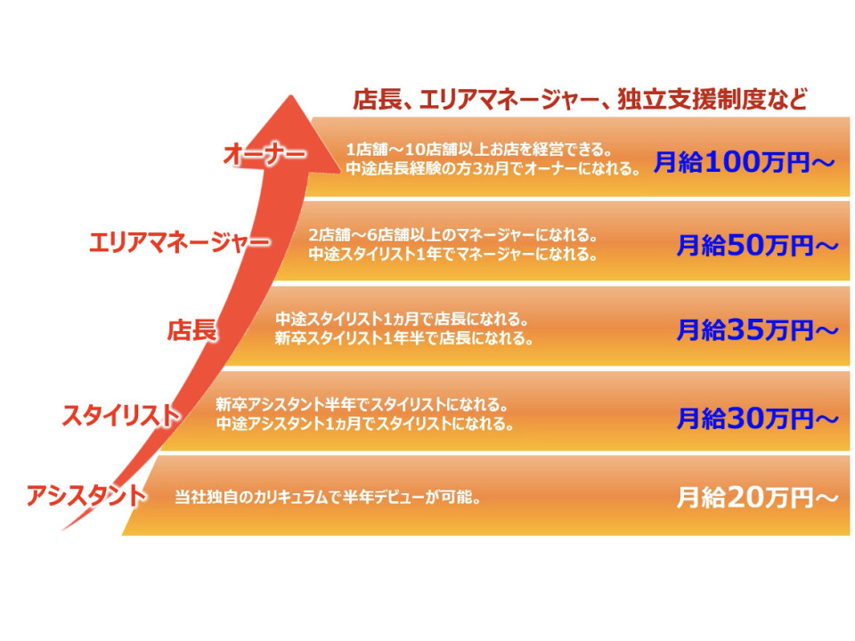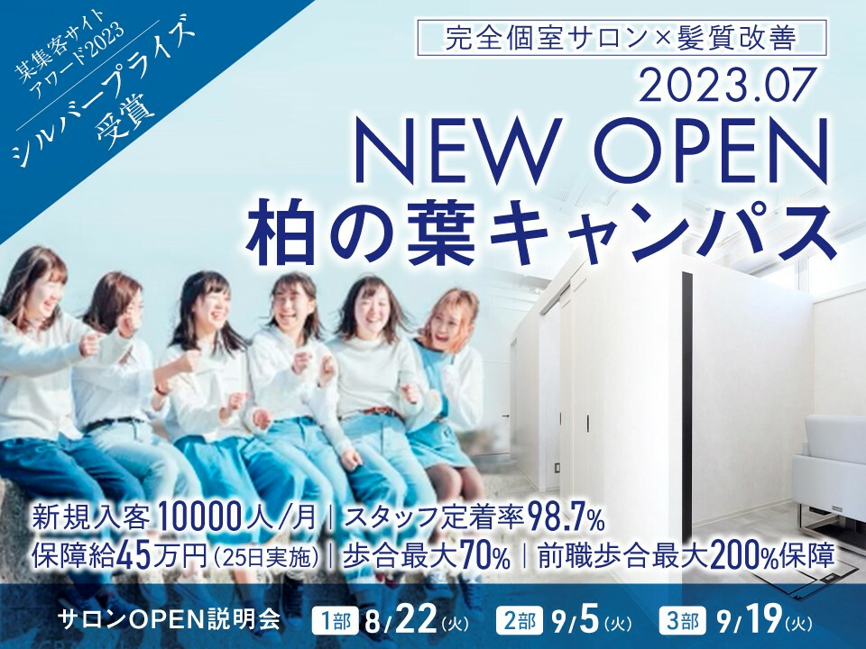 ☆2025年も続々NEWOPEN☆ 9月/10月/11月 新宿 大宮 梅田 《今がチャンス!対象人数限定!》 入社お祝い金10万円(入社後5万円+半年後5万円) ※業務委託でも社会保険加入可◎ 《保障給:ライフスタイルに合わせて選べる♪》 ~あなたはどのタイプ?~ A.保障給月35万円(月23日出勤⇒月7日休み) 顧客がいない…もしくは初めての業務委託で心配… でも入社初月から給与は下げたくない…そんな方におすすめ! B.フリー歩合47%+指名歩合47% 顧客がいない方で、まずは効率よく入客して 指名客をつくりたい方におすすめ! C.フリー歩合40%+指名歩合60% 指名をつくるのに自信がある方や すでに顧客をお持ちの方におすすめ! ※その他、働き方に合わせた保障アリ♪ ※入社3ヶ月 スタッフ満足度95%! 創立12年で全国70店舗以上! 「働きやすさ」×「効率よく稼げる」 勢いがある会社だから入客チャンスもたくさん♪ あなたの時間を有効活用しながら、 効率よく稼ぐことができます! ◆フリー:40~45% ◆指名:47~62%◆客単価7000~1.2万円 ◆1日の平均報酬約23000円 ◆店販手当(10%~20%) ◆材料費・光熱費・広告費・備品・道具類は完全会社負担 ◆平均1日5~7名 《報酬実績》 ☆スタッフ平均報酬45万円☆ 〇23歳女性、弊社でデビュー/スタイリスト歴2年 報酬44万円(1日10h、月10日休み) 〇28歳女性/社歴6ヵ月 報酬33万円(1日7h、月9日休み) 〇27歳男性/社歴1年3ヵ月 報酬57万円(1日12h、月10日休み) 〇31歳男性店長/社歴2年/店長歴5ヶ月 報酬78万円(1日10h、月7日休み)