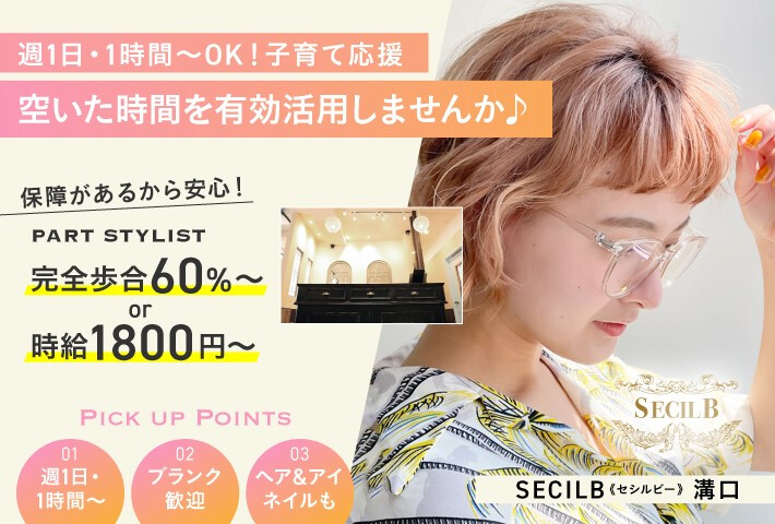 ◆◇安心、安定の《マンツーマン》施術で無理のないお仕事を◇◆ ○無理のない予約取り♪ カツカツに予約を詰めることはないので お客様に確実な技術、接客をご提供でき スタッフ一人一人も、余裕のあるお仕事ができます♪ ○基本的な美容師としての業務 ・シャンプー・カット・カラー・パーマ・縮毛矯正・受付等etc… ※アップスタイルなどのセットメニューはございません! ○デザインカラー、髪質改善系メニューも人気♪ ・パーソナル系カラー、バレイヤージュ、エアタッチ、ポイントカラーetc… ・酸熱トリートメントカラー などのメニューにも力を入れていて、幅広いお客様にアプローチできるよう 常にメニュー、クーポンの改善、改良を行っています☆ ◆◇土日祝休み・時短勤務OK☆週2~出勤可能◇◆ ○仕事も、ご家族との時間も大切にいたします♪ ・連休も、もちろんOK お休みもしっかり取れるので、趣味の時間や旅行に行ったり☆ スタッフ一人一人のライフスタイルを尊重いたします! ・ご希望のお日にち、お時間ありましたら 是非!ご相談下さい☆ できる限り、ご希望に添えるよう対応いたします! ○夏季休暇や年末年始のお休みも有り♪ ・詳しくは、下記休暇制度をご確認下さい。 ○パパさん、ママさん美容師活躍中♪ ・産休、育休制度もしっかりと実施しております! 育児などで時間がない、ブランクがあって不安… などなど、気にせず大歓迎です☆ 是非!気兼ねなくご相談ください! ◎その他気になることや、設備の見学など、常時受け付けていますので お気軽にお電話、ご応募下さい☆