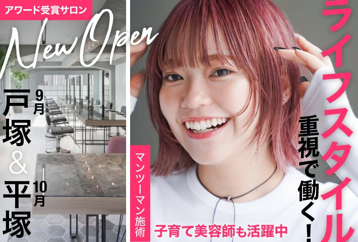 お子さんをお持ちの美容師にも特に働きやすい環境です!勤務時間や急な休みにもしっかり対応してもらえるので子供の体調不良や学校行事などにも心配がありません! 「育児サポート」でこれから復帰を考えていて小さいお子さんを抱えていても安心してお勤めいただけます。 各自、環境やライフスタイルに合った働き方で、プロジェクトチームによる独自カリキュラムでの育成や情報配信によるスキルアップの充実!会社負担で内外部の講習が受講できるのも魅力、Z世代カリスマ美容師による動画教育サポートも充実!、パートでも自由に参加が出来て美容師としてスキルアップに繋がりモチベーションになっています! パートさんにも歩合がつくので、やりがいを感じられます! 『パートさんでも、常時売上上位の実績を持つ、ママさんスタ入りスタントさんもいます!』 また、予約制ではないので時短勤務でも稼げる☆ 自宅から通える距離にあるので徒歩、自転車通勤もできます♪ 【働きながらの子育てに嬉しい産休・育休】 産休・育休取得後に復帰し、活躍しているスタッフも多数! 女性も男性もプライベートに合わせて働けます。 勤務時間帯に関しても気軽に相談ください。 ■スタイリスト 時給1,290円~1,500円 +歩合 昇給(随時) 交通費支給 売上手当 残業手当 ★Wワーク可能 副収入を得たい方も時間、勤務日数に応じます。 まずは応募にてご相談ください。