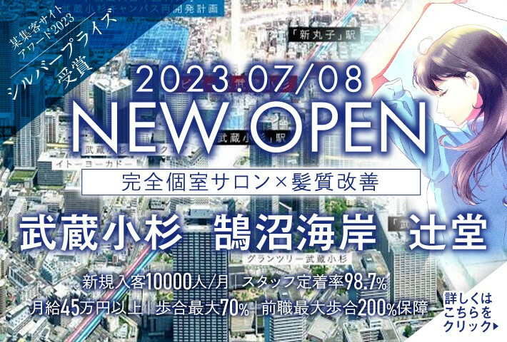 ★集客好調店舗★ 東京『銀座』『恵比寿』『目黒』『中目黒』『門前仲町』 大阪『堀江』 福岡『博多』 【集客好調店舗限定特典】 ①歩合一律70%還元 ②日給保障¥17,000 ①、②の高い方を報酬として貰えます♪ ※3ヶ月保障 同時募集 【関東】 三軒茶屋 武蔵小杉 大宮 藤沢 【関西】 梅田 【宮城】 仙台 【両方貰える入社特典】 ①新規フリー50%指名60%還元 ②保障給35~50万円※勤務日数・勤務地により異なる ①、②の高い方を報酬として貰えます♪ ※3ヶ月保障 【歩合から諸経費など引きません!】 歩合がそのまま報酬に直結! ※消費税分も全額お渡ししております! ※アシスタント使用代・材料費・光熱費など一切引かれません! ※ドライヤー・アイロンなど道具類も全て会社が用意◎ 【2025年集客サイト 】 『7年連続GOLD Prize受賞』『9年連続SILVER Prize受賞』 客単価1万円以上で集客も絶好調♪ ※入客キャンペーン※ 入客制限なし! 新規のみでも1日5名~入客可能 頑張りが報酬に反映! 例)前職報酬30万円 ⇒現在報酬60万円 ・選べる勤務時間 ・WワークOK※週2日~OK♪ ・余裕をもった施術時間(カット1h~、カットカラー2h~) ・マンツーマン接客・掛け持ちなし ・1日の平均入客数6~10人 ・7月新規フリー客 各店実績 【新宿店:1200人/梅田店:1500人/仙台店:1000人】 ・週休2日※勤務日数応相談可◎ ・土日休み・長期休みOK ・平均顧客単価1万円 ・インボイス説明会・対策あり 私達は夢やビジョンに共感し、共に高め合い成長できる仲間を募集しています。