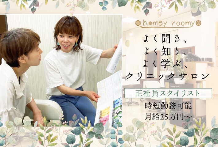 💡【アカデミー完備で効率よく!できることからスタート!】 📅平日4日間はアカデミーで集中して学ぶ! ✂️土日はサロンワーク! ⏰他2日間は休み♪ 効率よく学べるから 自信をもって早期デビュー🌈 《1週間のスケジュール》 ※アカデミー(平日4日間) 10:00〜13:00 レッスン 13:00〜14:00 休憩 14:00〜16:15 レッスン 16:15〜16:35 休憩 16:35〜19:00 レッスン 💰基本給24万~ 💡週休2日制 🧑🤝🧑スタッフ定着率96.7% 🫶社会保険完備 👍中途アシスタントはできるところからスタート (最短3ヶ月でデビュー) 🤝アシスタントのモデル入客も営業時間内に! →1日のモデル人数が倍増🎉 →スキルアップ💪 →モデル集客費用も会社負担👍 🔥《実績》 ※デビュー初月 入客数120名/客単価/6500円売上80万円→月収35万円 ※デビュー4カ月 入客数150名/客単価/7000円/売上100万円→月収42万円 🚀《キャリアアッププランで多様なコース》 副店長・店長・エリアMG・サロン統括・FCオーナー・講師・インストラクターやなど。 スタイリストのその先のキャリアアップも充実。 美容師をしながら講師を行なうこともできます♪ 🌱《入社後も安心して働ける手厚いサポート》 サロンでの悩み、働き方を変えたい、など。 人事担当×現場の統括マネージャーが W体制でいつでも相談にのります🌟