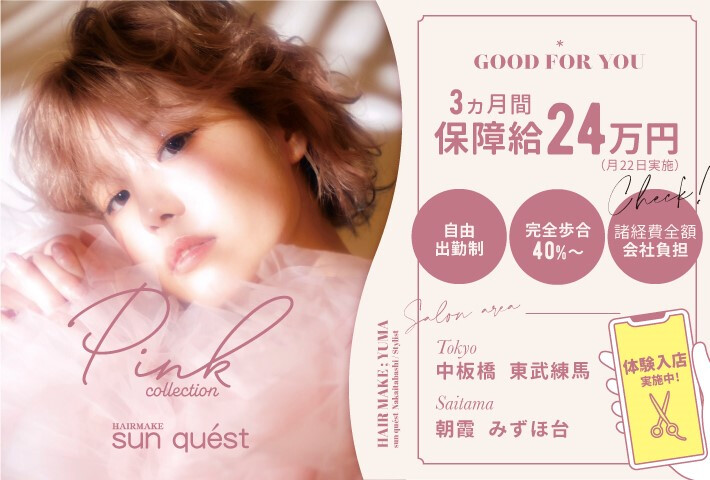 \ 若手スタッフが活躍できる環境・チャンスがたくさん / ★☆アカデミー制度充実 ~営業時間中に集中して学べる環境~ 〇基礎からしっかり学べる 各講師陣・外部講師からアカデミーでしっかりと習得。 〇講師からの直接指導あり 疑問点はその場で質問OK 不安をすぐに解消しながらステップアップできます。 〇デビュー最短1年~ 早期デビューもマイペースにデビュー2~3年も◎ 〇豊富な外部講習 メーカー講習やディーラー講習など、多彩な内容で知識の幅が広がります。 〇成長ランクに応じたアカデミークラスに参加 今の自分に合ったレベルで学べるので、無理なく着実に成長できます! 〇週1回の店舗練習日あり 各店舗で定期的に練習を行うことで、技術の定着もしっかり◎ ★☆クリエイティブも 社内コンテストや表彰制度もあり、モチベーション高く取り組めます。 撮影会や外部コンテストへの参加など、 クリエイティブな活動にも積極的に関われるチャンスあり! 普段のサロンワークに加え、成長できる場がたくさんあるので、 楽しみながらスキルアップを目指せます♪ 「もっと成長したい」「技術を磨きたい」 そんな意欲のある方にぴったりの環境です。 ★☆充実の福利厚生 ・完全週休2日制 ・実働8h ・有給取得率100% ・月23万円~ ・賞与あり ・交通費月2万円+住宅手当 ・営業時間内の練習・モデル入客OK ・着付・ヘッドスパ ・トータルビューティーサロン ・年1回社内授賞式 受賞者は豪華商品贈呈! ・女性フタッフ8割活躍中 ★☆アシスタントさんも活躍中 中途入社→1年以内にデビュー実績! 外部カット講習の検定も合格し入客好調♪ ぜひ一度サロン見学へ!