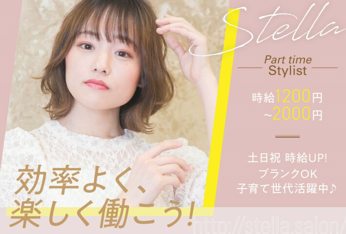 お子さんをお持ちの美容師にも特に働きやすい環境です!勤務時間や急な休みにもしっかり対応してもらえるので子供の体調不良や学校行事などにも心配がありません! 「育児サポート」でこれから復帰を考えていて小さいお子さんを抱えていても安心してお勤めいただけます。 各自、環境やライフスタイルに合った働き方で、プロジェクトチームによる独自カリキュラムでの育成や情報配信によるスキルアップの充実!会社負担で内外部の講習が受講できるのも魅力、Z世代カリスマ美容師による動画教育サポートも充実!、パートでも自由に参加が出来て美容師としてスキルアップに繋がりモチベーションになっています! パートさんにも歩合がつくので、やりがいを感じられます! 『パートさんでも、常時売上上位の実績を持つ、ママさんスタ入りスタントさんもいます!』 また、予約制ではないので時短勤務でも稼げる☆ 自宅から通える距離にあるので徒歩、自転車通勤もできます♪ 【働きながらの子育てに嬉しい産休・育休】 産休・育休取得後に復帰し、活躍しているスタッフも多数! 女性も男性もプライベートに合わせて働けます。 勤務時間帯に関しても気軽に相談ください。 ■スタイリスト 時給1,290円~1,500円 +歩合 昇給(随時) 交通費支給 売上手当 残業手当 ★Wワーク可能 副収入を得たい方も時間、勤務日数に応じます。 まずは応募にてご相談ください。