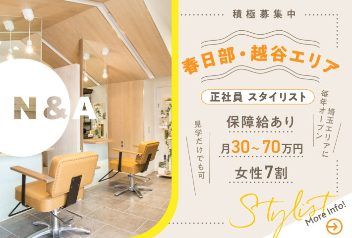 ★Naturalグループってどんなサロン??★ ●スタッフ定着率95%・とにかく働きやすさに自信あり!! ●正社員でも業務委託でも、それぞれに合った働き方が選べます♪ ●ほとんどスタッフが当社で初めて業務委託デビュー☆(みんなで助け合う環境なので安心してスタートできる♪) ●アディクシー/キラテラ/髪質改善などトレンド商材も積極導入☆ ★安心の保障制度!!日給1万5000円~♪ 保障給45万円(月30日実施) 保証給33万円(月22日実施) 保証給24万円(月16日実施) ●平均月収35万円!最高月収80万円! ●勤続年数によって歩合率UP⤴⤴⤴☆ ●シフト制でプラーベートも充実♪ ●全店新規フリー客多数!即入客可! ●女性スタッフも多数活躍中♪(女性比率70%) ●ママさん美容師も多数活躍中♪(時短勤務OK・土日休みOK) ●FC(フランチャイズ)独立支援制度あり!(FCオーナー4名輩出実績) ●充実の社会保険完備 ●確定申告説明会あり ★今後も続々新店舗オープンのためチャンス多数★ ●とにかく稼ぎたい! ●安定した収入が欲しい! ●プライベートも充実させたい! ●店長になりたい! ●マネージャーになりたい! ●FCオーナーになりたい! ご応募後、なんでもお気軽にご相談ください♪