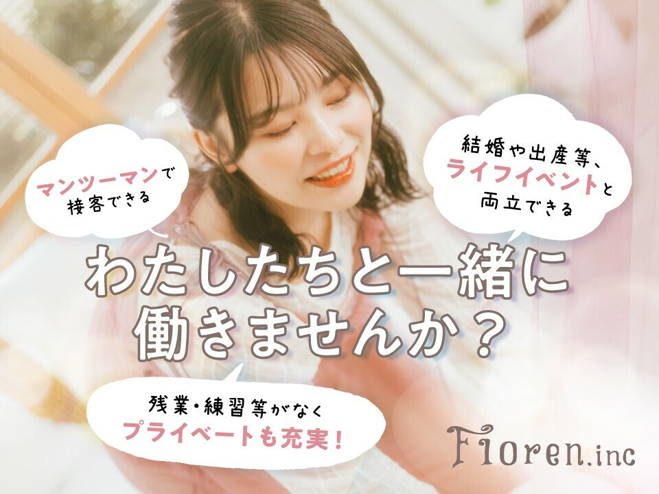 あなたが「やってみたい」と思うことができる! 豊富なメニューと高品質な商材で 大好評のサロンです! 《ここがポイント》 ポイント1 正社員~業務委託と、ライフスタイルに合わせて 働き方が選べます! ※業務委託でも社会保険加入可◎ ポイント2 集客絶好調につき、入客チャンスたくさん! ぜひここであなたのお客さまをつかんでくださいね。 ポイント3 時間を大事にしたい方には最適の環境! 時間を有効活用しながら、 効率よく稼ぐことができます。 理解し協力し合える仲間が心強いサロンで あなたのらしく活躍しませんか? スタッフが楽しく働けるようにサポートしていきますので、 一緒に一流のネイリストを目指しましょう☆ まずはお気軽にサロン見学にお越し下さい!