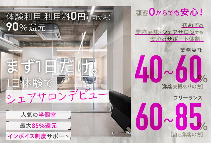 \ あなたにあった単価のサロンを選べます / ■顧客単価3千円~1万円以上のサロンまで。 お客様層やお店の雰囲気も異なるので、面接時のご相談ください。 フリー入客・好立地店舗多数♪ ■店舗は全てショッピングセンター内 ■30~50代(男女比3:7)のスタッフが活躍中! ■業務委託スタイリスト50~60名在籍中 ■1日入客4~8名、お客様一人ひとりにしっかり向き合える \ その他様々な特徴あり / ■土日休み、長期休みOK◎ ■体験入店1日1万円実施中! ■出勤日シフト制 ■新規フリー客多数で即入客可能 ■ママパパ・ブランクある方も大歓迎! 創業60年以上の老舗サロンが経営しているので、 業務委託という働き方が初めての方もしっかりサポートします◎ 安定して長く働きたいスタッフが多いです。 より良いお店作りのために、新しいスタッフを募集しています! 是非、あなたの力を貸してください! ☆★よくあるご質問☆★ Q:面接時どのようなところを重視していますか? A:さくら屋では人柄を重視していますので、目標や夢がある方・お客様とのコミュニケーションを 大切にできる方を積極採用しています。 Q:どのような方が働かれていますか? A:現在20~50代の幅広いご年齢の方が活躍しています。 地域密着サロンのためギスギスした感じはなく、安定して長く働きたいスタッフが多いです。 Q:子育てとの両立は可能でしょうか。 A:可能です。産休育休取得率100%、子育てスタッフ数43名と多くのスタッフが両立しながら働いています。 正社員の中でも時短で働ける「準社員」「準々社員」「パートスタイリスト」という働き方もあるのでお気軽にご相談ください。