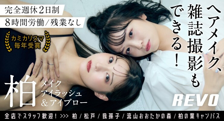 | スタッフの卒業校 | パリ総合美容専門学校柏校 パリ総合美容専門学校千葉校 ユニバーサル美容専門学校 千葉ジェイヘアメイク美容専門学校 国際理容美容専門学校 ハリウッド美容専門学校 国際文化美容専門学校 |