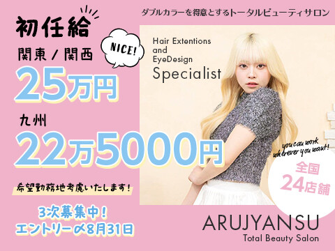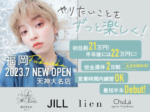 スタッフ10名以下 / ヘアショー・撮影会・コンテスト / 雑誌撮影 / 社会保険完備 / 完全週休二日制 / 土日休み可 / 勤務時間応相談 / 育児休暇実績あり / 独立支援制度 / 特殊メニューあり / 外部講習 / デビューまで2年以内 / 海外研修