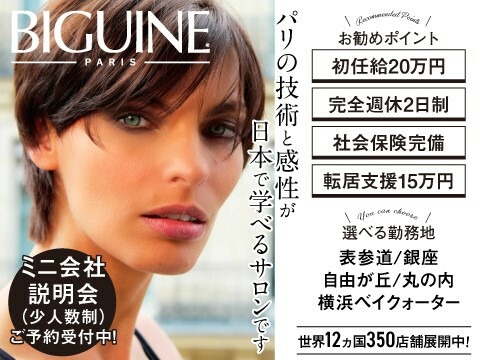 新規フリー客多数 / スタッフ10名以下 / 女性スタッフ比率50%以上 / ヘアショー・撮影会・コンテスト / 社会保険完備 / 育児休暇実績あり / 管理美容師免許歓迎 / 外部講習 / デビューまで2年以内 / ブランクOK / 未経験者可 / 幹部・店長候補歓迎