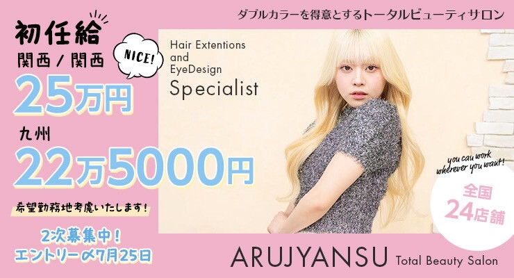 \✨夢を叶える環境がここに!✨/ 💇♀️美容師・アイリスト25万 +交通費 🏠社員寮&一人暮らしサポート20万 🎤ヘアショー・コンテスト挑戦OK✂️🔥 📚最短1年デビュー!「好き」を伸ばせる教育 💖ヘアメイク・ネイル・アイ・着付けも学べるトータルビューティ環境