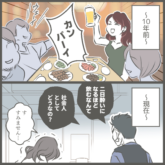 3カ月ほど前、ついに飲み会の次の日、営業中に気持ちが悪くなってトイレに駆け込んでしまいました。店長には「そんな二日酔いになるほど飲んで、次の日出勤するなんて社会人としてどうなんだ?」と怒られてしまいました。