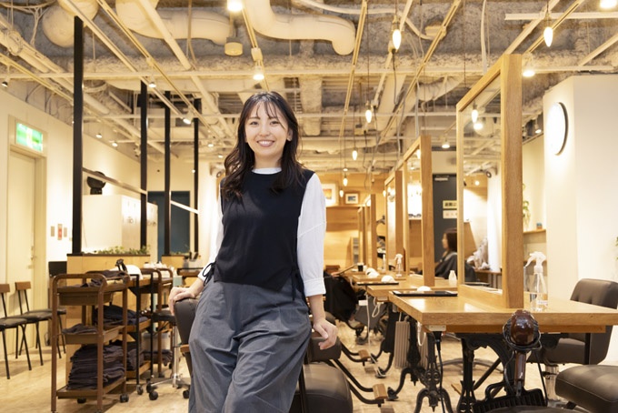 ここは業務委託サロンなんですが、所属しているスタイリストの多くは30代以上の落ち着いた大人世代なんです。穏やかで優しい人が集まっているので、ここなら働きやすそうだなと思いました。サロンワークは基本的に10時〜22時のうちの8時間制で、自分のスケジュールに合わせられます。顧客ゼロからでも最低保証の給与があり、安心してスタートできるのも魅力でした。ただ立地的にも、フリー客が多いので、ありがたいことに初日から忙しかったですね。