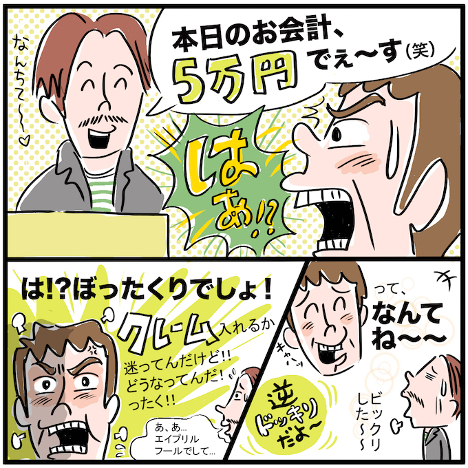冗談のつもりが命がけ。会計で逆ドッキリを喰らった日(34歳/男性)