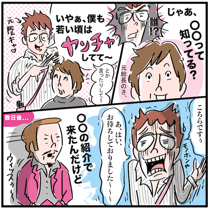 お客さまと学生時代の話で盛り上がっていたときのこと、場の流れで、つい言ってしまいました。「自分、若い頃ちょっとヤンチャしてて…」。完全に軽口。本当は部活と家の往復だけの、ど真面目人生で、どちらかと言うとむしろ陰キャ。ところが、その一言に対するお客さまの反応が異様でした。「え!?じゃあ〇〇知ってる!?」「〇〇愚連隊は?」「何年代!?」具体名が次々と飛び出し、嫌な汗が止まりません。「いや、その辺は…」と濁しつつ、嘘だと言い出せないまま話を合わせていると、とどめの一言が飛んできます。「△△って元暴走族の総長、友達だからさ。次、「お店来るように言っておくよ」…話が、想像を完全に超えました。必死に「もう過去とは縁を切ってて…」と軌道修正を試みるも、時すでに遅し。