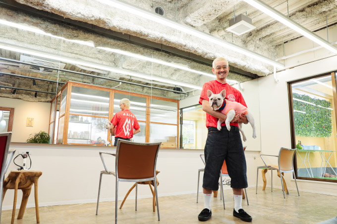 はしゃぐ愛犬を眺めながら髪を切る飼い主…… BULLSON YUJIROがつくった、「犬と人が楽しむ美容室」