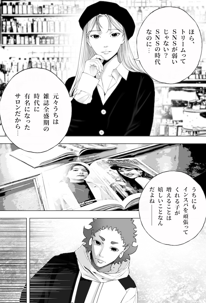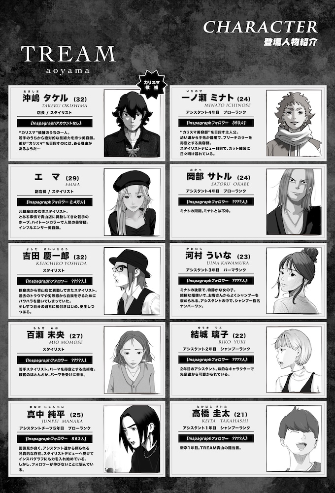 イラストレーター兼美容師TAKUOさんの完全オリジナルストーリー「カリスマたちの物語」。激戦区サロンでカリスマ美容師を目指す、一ノ瀬湊の成長の軌跡をぜひご覧ください。