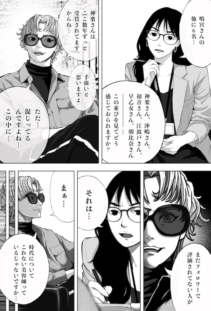イラストレーター兼美容師TAKUOさんの完全オリジナルストーリー「カリスマたちの物語」。激戦区サロンでカリスマ美容師を目指す、一ノ瀬湊の成長の軌跡をぜひご覧ください。