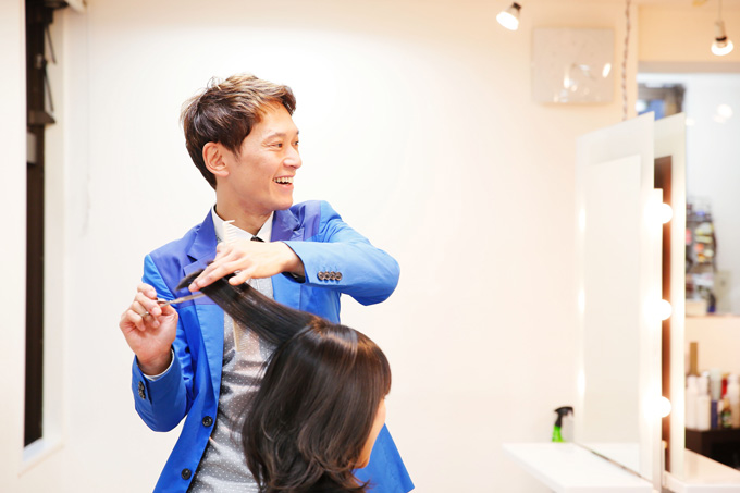 髪の悩みが軽減されたお客さまは、灰色だった空が青く見えるようになると言います。お洒落をする気持ちになり、社交的になります。お客さまを笑顔にするのはヘアデザインだけではありません。独立を夢見ている、能力が高く、美容に熱い人にこそ、そのことを知っていただきたいです。