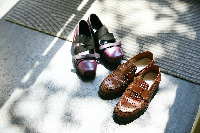 (写真左から)OPEN YY CROSS BAND BALLET FLATS PURPLE/ Maison Margela コインローファー