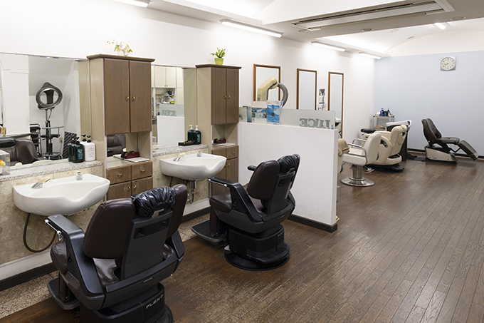 理容室から、美容もできるサロンへと内装をリニューアルしました。セット面は理容が2面、奥側が女性ブースで美容を3面設置しています。最初は両親とスタッフと営業していたんですが、コロナ禍を境に、母と二人になりました。と言っても、母はもう高齢なのでハサミは持たず、フェイシャルとネイルをしています。もともと美容学校の先生をしていたんです。