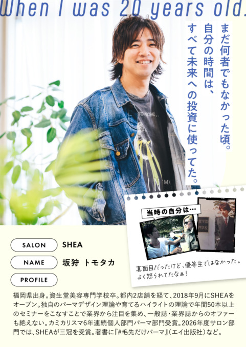今回は、SHEA(シア)のオーナーを務める、坂狩トモタカ(さかがりともたか)さんに二十歳の頃のお話を伺いました。