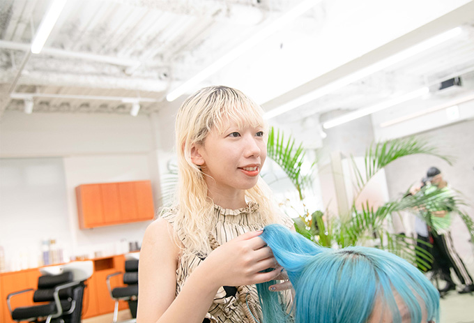 美大生や音大生のお客さまも多く、とても発想豊かなオーダーをされます。その方の感性を生かしながらも、どう似合わせ、自然体に見せられるかを考えながらスタイルをつくりあげていきます。そんなときは、私も芸術家になった気分で、お客さまと一緒に作品をつくり上げていく気持ちで、楽しみながら施術させていただいています。