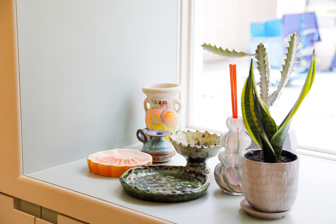 なかでも特にこだわったのは、カラー施術のしやすさです。わたしのお客さまはハイトーンカラーをする方が多いため、自然光の入り方や照明の配置、ワゴンや動線の取りやすさには徹底的にこだわりました。施術エリアとシャンプーエリアとの距離感も絶妙に調整し、無理なく移動できるようにしています。カラーブースもあえて見える場所することで、綺麗な状態が保てるようになっています。私はお話しながら接客をするスタイルなので、カラー剤を作りにいったり、何かとりにいく時も常に姿が見えて、お客さまをフロアに一人にしない設計です。