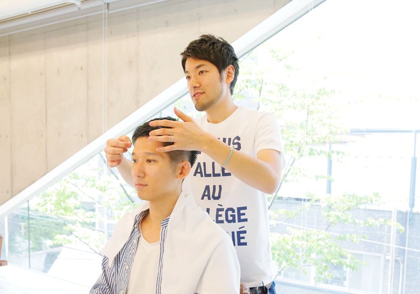癒しの時間を終えて、いよいよドライとセットで仕上げます。ヘッドスパで血行が良くなり、顔がシャープな印象になった洋輔さん。激務明けの朝でお疲れ気味でしたが、目もぱっちりと開きました。