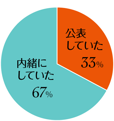 サロン内恋愛は、67%の人が「内緒にしていた」と回答。「公表していた」は33%にとどまりました。