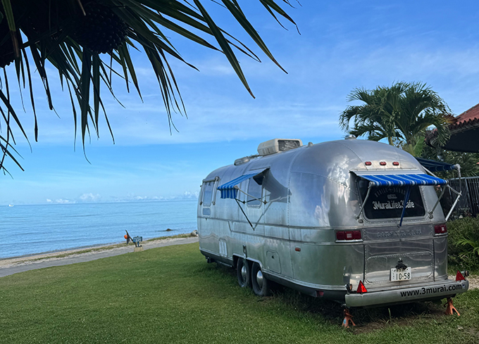 沖縄本島・読谷村(よみたんそん)のビーチに出没する、エアストリームの理容室『3MuraiLife&3Cafe(サムライライフアンドミカフェ)』。運営しているのは、名古屋出身の梶田貴伸(かじたたかのぶ)さんです。20代は異業種で働いていたそうですが、オーストラリアで暮らした期間に大自然に魅せられ、帰国後は「手に職をつけて現地に戻りたい」と、33歳で理容師に転身。そして、いよいよオーストラリアへ…というタイミングで、なぜか「沖縄」に導かれたそうです。家族で沖縄に移住し、今年13年目を迎えた梶田さん。紆余曲折のあったこれまでの道のりと、夢の叶え方について取材しました。