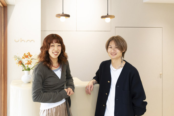 半個室×マンツーマン施術を軸にお客さまからの支持を集める一方で、9:30~17:30勤務といった働き方も実現しています。無理なく続けながら、しっかりと売上もつくれる。その両立をどう叶えているのか。今回は、今年2月に清澄白河にOPENしたおしゃれでありながら、肩の力が抜けた大人のこなれ感が心地よい新サロン「uhm(ウーム)」にて取材を実施。nir清澄白河(ニアきよすみしらかわ)とbia門前仲町(ビアもんぜんなかちょう)でそれぞれ店長を務めるmiku(ミク)さん、daiki(ダイキ)さんの2人に、働き方やキャリア、そして江東・墨田エリアで働く魅力について伺いました。